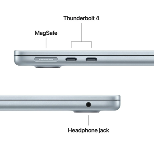 | Ports | Two Thunderbolt 4 (USB-C) ports with support for: Charging, DisplayPort, Thunderbolt 4 (up to 40Gb/s), USB 4 (up to 40Gb/s) | MagSafe 3 charging port | 3.5mm headphone jack |