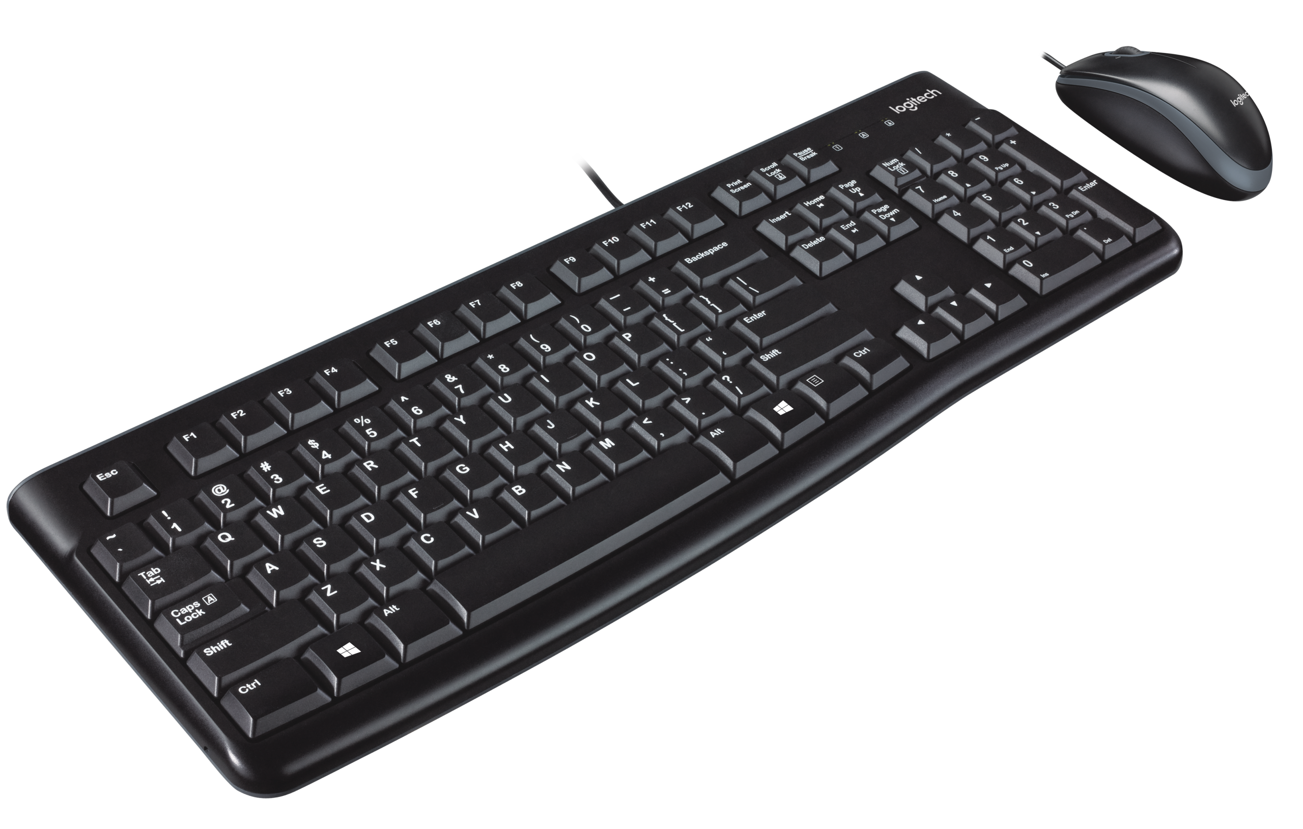 Logitech MK120 Wired Desktop Combo – Black. Keyboard and mouse combo with USB plug-and-play. Spill-resistant keyboard with quiet typing and full numeric keypad. Durable build rated for 10M keystrokes. Bold white characters for easy visibility.